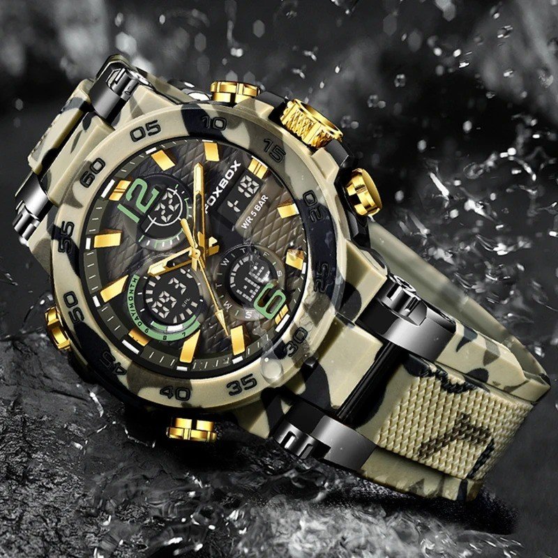 FOXBOX Outdoor Military Watch Men Fashion Camouflage Silicone Digital Watch