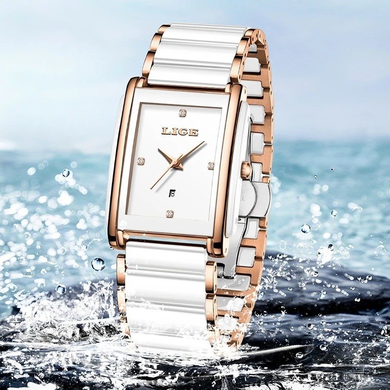 ছাড়LIGE-89156 Watch Waterproof Fashion Creative Square Siramic Watch