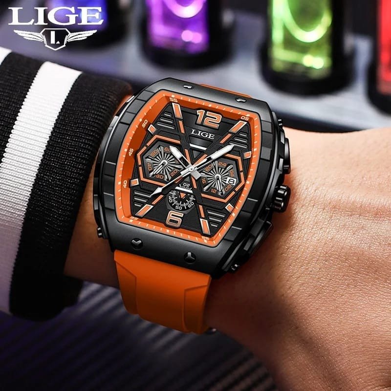 LIGE89108 Fashion Mens Watches 5ATM Sports Waterproof Quartz Wristwatch Luminous Date Silicone Clock Luxury Man Watch
