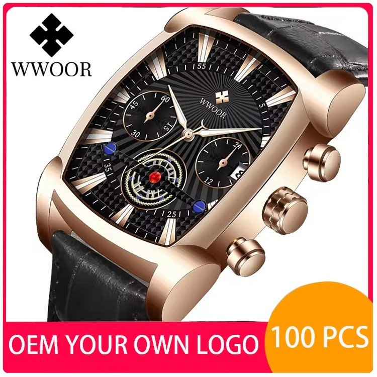 Wwoor 8843 High Quality Business Genuine Leather Tonneau Watch